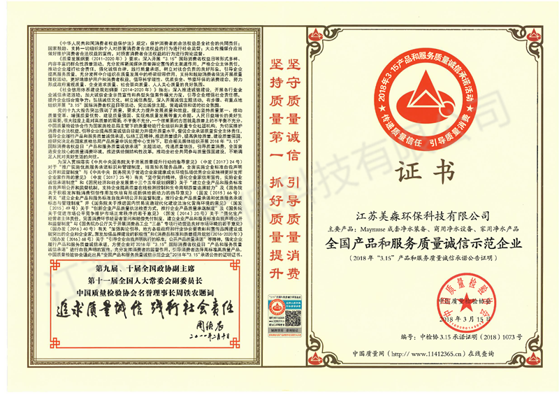 2018年-全國凈水行業質量領先品牌